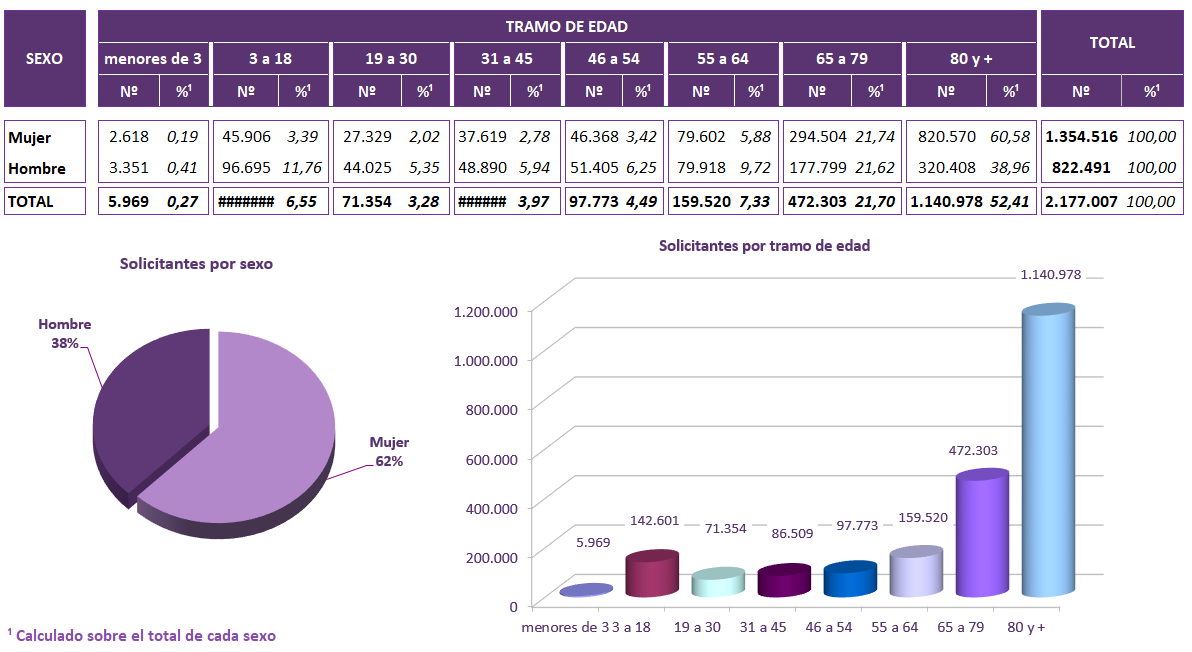 A fecha de 31 de enero de 2025, el perfil de la persona solicitante del reconocimiento de la situación de dependencia (sexo y edad) es el siguiente: