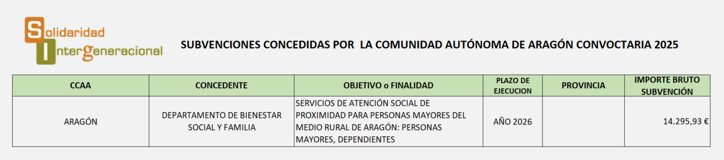 Solidaridad Intergeneracional, asociación estatal sin ánimo de lucro, cuenta con una sólida trayectoria de presencia en la Comunidad Autónoma de Aragón.